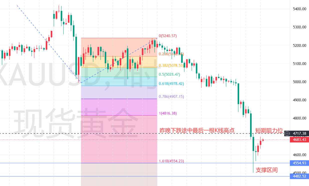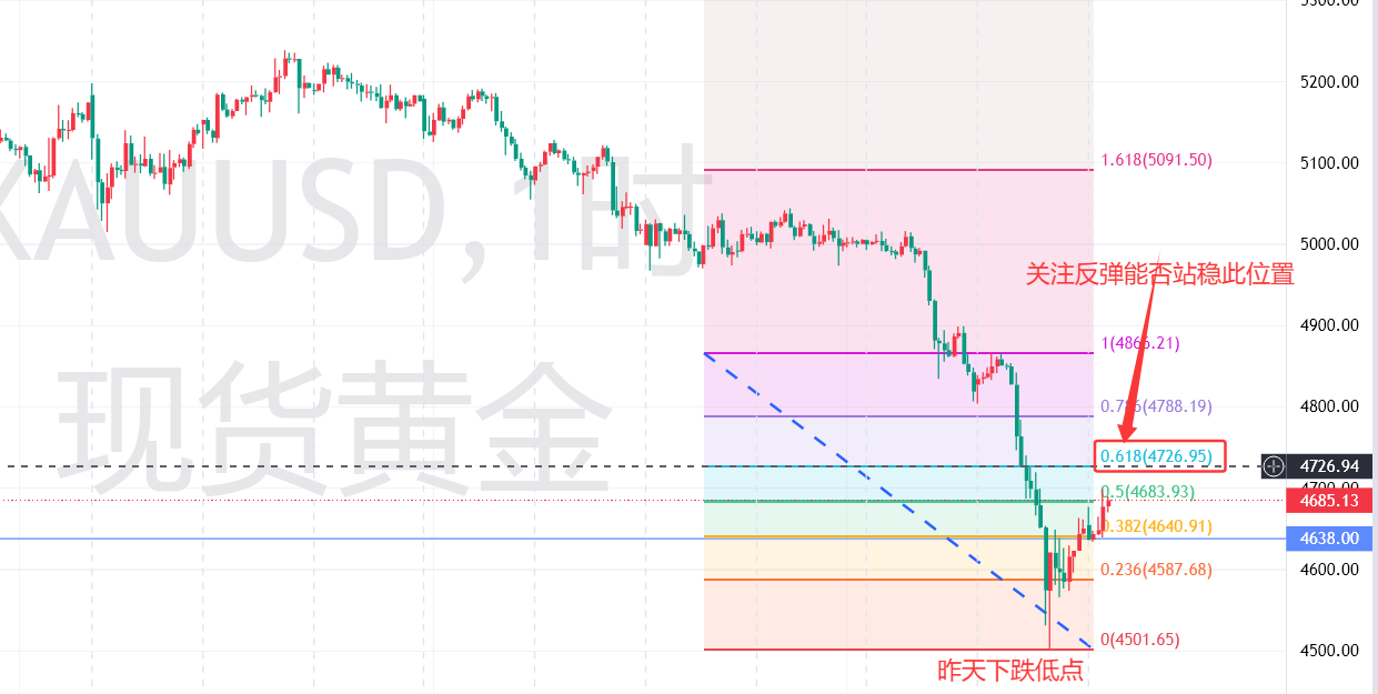 空单方面,顺势跟进:反弹至4700-4720美元区间 ,可布局空单,止损统一放在4750美元上方(强阻力位上方),目标先看4650-4638美元区间 ,若跌破4638美元且站稳,可继续顺势跟进,目标看4600美元附近 ,止盈后及时离场,不盲目持有空单。